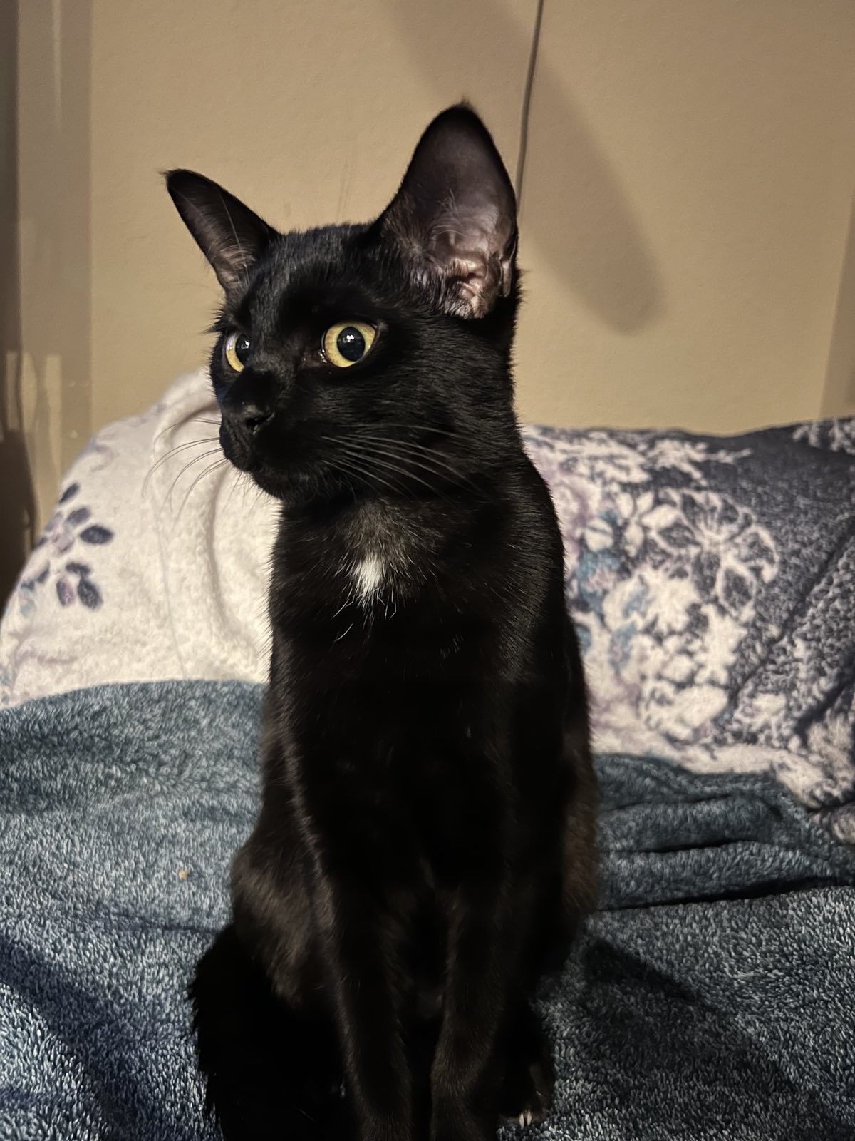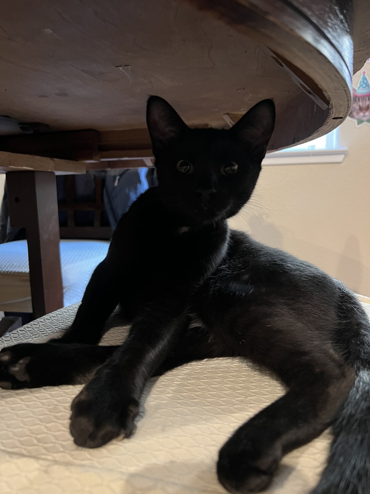Midnight is the braver, more adventurous one of the two. He’s curious, confident, and always the first to explore something new. His tiny squeaky meow is soft, sweet, and somehow perfectly matches his bold little spirit.